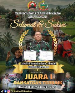 Letkol Inf Ambariyantomo Dandim 0713 Brebes Raih Prestasi Gemilang di Ajang Nasional TMMD 127 Sebagai Juara 1 Dansatgas TMMD Terbaik