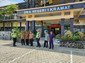 Didukung Petugas Jaga / Security siap menjaga dan menghimbau para pelajar untuk berperan aktif menjaga Sitkamtibmas dan Sitkamseltibcarlantas.