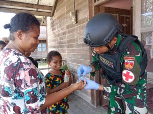 “Pelayanan kesehatan ini merupakan salah satu kepedulian TNI dan wujud bakti kami untuk masyarakat yang ada di Desa Tanah Merah, Kab. Teluk Bintuni, Papua guna membantu meringankan masalah kesehatan di Desa tersebut,” jelas Yanuar.