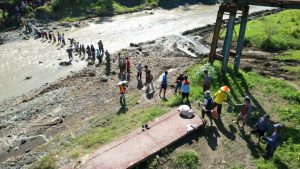 “Alhamdulillah hari ini dengan bantuan Dandim Brebes, warga Dukuh Wadas Gumantung sepertinya mimpi, baru seminggu kemarin di survey, kini sudah dibangun, bahkan hari ini langsung dikerjakan pengecoran lubang tiang pancang, dan 3 minggu kemudian akan dipasang Baja Sling dengan papan jembatannya”. imbuhnya.