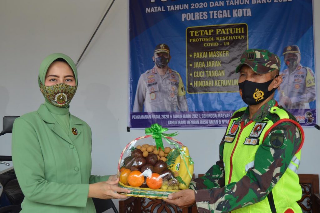 Topsberita.com. Tegal – Ketua Persit KCK Cab. XXII Dim 0712/Tegal Ny. Ica Sutan Siregar bersama Pengurus Bayangkari kota Tegal memberikan bantuan taliasih kepada personil pos pengamanan dan pos pelayanan Operasi Lilin Candi 2020. Selasa (29/12/20) Kegiatan dilaksanakan dengan tetap berpedoman pada protokol kesehatan Covid – 19. Kegiatan pemberian taliasih tersebut berupa pemberian bingkisan dan buah-buahan yang diberikan kepada personil yang melaksanakan jaga pengamanan dipos-pos terpadu wilayah pantura kota tegal. Hadir dalam kegiatan tersebut, Dandim 0712/Tegal Letkol Inf Sutan Siregar, S.I.P, Ketua Persit KCK Cab. XXII Dim 0712/Tegal Ny. Ica Sutan Siregar, Ketua Bayangkari Polres Kota Tegal Ny.Ahmadi, Pengurus Bayangkari Ny. M. Kharis, Ny. Bambang, Seksi Sosial Persit KCK Dim 0712/Tegal Ny. Irwan, Seketaris Persit KCK Dim 0712/Tegal Ny. Suroso dan tiga orang Polwan Polresta Tegal Dandim 0712/Tegal, menyampaikan ucapan terimakasi, kepada seluh anggota yang terlibat dalam pengamanan Natal 2020 dan Tahun Baru 2021. “Terima kasih saya ucapkan untuk jajaran baik dari TNI POLRI Dishub , Tenaga Kesehatan, Pol PP serta Anak-anak Pramuka yang sudah bertugas tanpa kenal lelah memberikan pelayanan kesehatan dan pengamanan saat libur Natal 2020 dan tahun baru 2021 ,” ucapnya. ini merupakan bentuk rasa kepedulian, serta perhatian kepada anggota yang mendapatkan tugas menjaga pos-pos pengamanan Natal dan Tahun baru 2021. “Dengan adanya bantuan dari kami, walaupun bantuan ini tidak seberapa, semoga dapat membantu dan motivasi dalam mengemban amanah negara. (Nrs/Tgh)