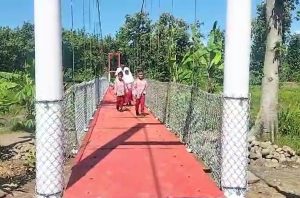“Setelah melihat Jembatan Gantung berdiri, saya menitikkan air mata, syukur Alhamdulillah, ini terwujud melalui campur tangan Tuhan, dalam waktu singkat Tiang Jembatan bisa digunakan”. Tutur Kepala Desa.