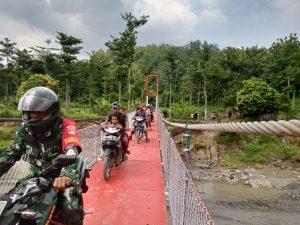 “Alhamdulillah berkat Gerakan Tangan Tuhan dan seluruh warga serta relawan, Jembatan Gantung Merah Putih sudah berdiri tegak antara Dukuh Satir dan Dukuh Wadas GUmantung”. Papar Dandim.
