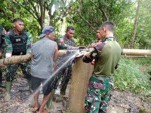 Keerom, Tops Berita ~ Air bersih menjadi hal yang penting bagi keberlangsungan hidup. Bersama warga perbatasan, Satgas Yonif 310/KK memperbaiki aliran mata air yang lama tersumbat di Kampung Ubrub Distrik Web Kabupaten Keerom, Papua, Rabu (23/8/2023).