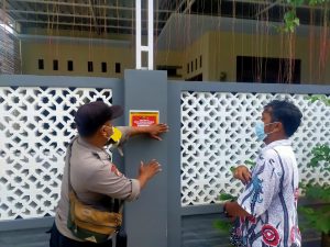 Pemalang -Topsberita.com- Beberapa rumah pasien Covid-19 yang sedang menjalani isolasi mandiri (Isman) ditempeli stiker oleh Bhabinkamtibmas Polres Pemalang bersama Satgas Covid-19, tujuannya sebagai pengingat warga sekitar agar tetap mentaati protokol kesehatan dan mencegah penularan Covid-19 agar tidak semakin meluas, Kamis (3/2/2022).
