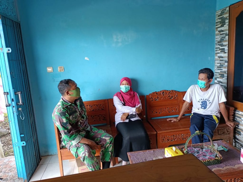 Tops berita. com. Demak-Babinsa Jragung Serka Masrokin bersama dengan petugas kesehatan dari Puskesmas 1 Karangawen mengunjungi Bapak “FD” di dukuh Krajan Rt 01 Rw 02 yang sudah diperbolehkan pulang setelah menjalani isolasi selama 15 hari di Rumah Sakit Ketilang Semarang. Warga tersebut dinyatakan sembuh dari Covid-19. Senin 11/01/2021. Serka Masrokin yang kesehariannya menjabat sebagai babinsa Desa Jragung Koramil 13/Karangawen Kodim 0716/Demak mengungkapkan dengan kegiatan sambang tersebut diharapkan dapat memberi dorongan semangat moril untuk selalu menjaga kesehatan. Selain melakukan sambangan, Serka Masrokin juga melakukan koordinasi dengan perangkat desa dan tokoh masyarakat, agar bisa menerima dan selalu memberikan semangat, dan tetap patuhi protokol kesehatan. ” tuturnya. Babinsa berpesan kepada warga disekitar agar tidak mengucilkan “FD”dan keluarga karena sudah benar-benar dinyatakan sehat dan bebas dari Covid-19, namun perlu dorongan semangat, bahwa disiplin adalah vaksin yang ampuh. ” Pada kesempatan tersebut, kita gunakan untuk menghimbau, agar Bapak “FD” dan keluarganya diminta untuk tetap disiplin menjalankan protokol kesehatan, diantaranya dengan tetap memakai masker dan sering mencuci tangan dengan menggunakan sabun, serta tetap berada di rumah untuk beberapa hari kedepan, selain menghindari kerumunan. Pungkas Babinsa. ( Tgh )