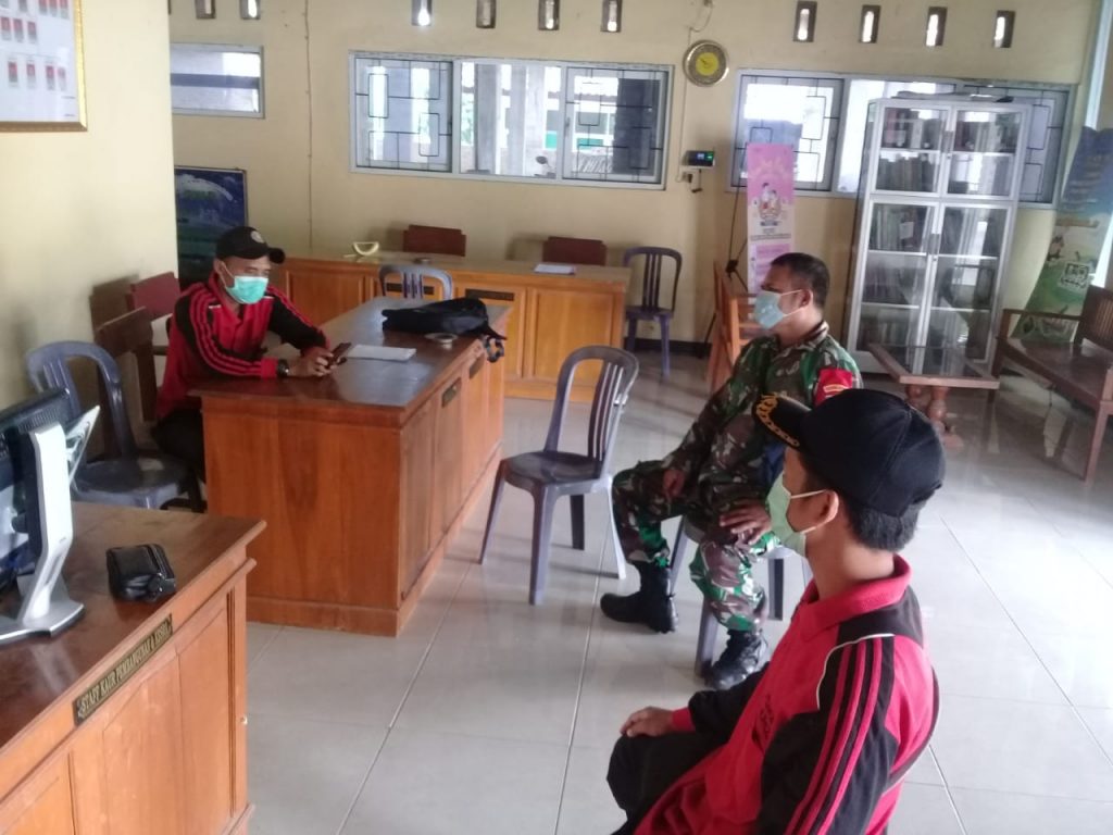 Topsberita.com. Demak- Waspada bencana banjir dan tanah longsor akibat tingginya curah hujan di wilayah binaan, Babinsa Koramil 10/Guntur Kodim 0716/Demak Sertu Rajikan melaksanakan komuniksasi sosial(komsos) dengan Kepala Desa Temuroso bapak H Muhlisin di Balaidesa Temuroso Kec. Guntur Kab. Demak. Jum’at 15/01/2021. Komsos yang dilaksanakan Sertu Rajikan bersama perangkat Desa tersebut bertujuan untuk, mensosialisasikan serta mengajak warga masyarakat lainnnya untuk mengantisipasi situasi yang dihadapi saat ini, yaitu cuaca hujan yang cukup tinggi dan dapat berakibat banjir dan tanah longsor. “Kita harus meningkatkan kewaspadaan karena cuaca saat ini sering hujan, dan menghimbau warga yang berada di bantaran sungai untuk berhati-hati atau mengungsi di tempat yang lebih aman, agar dapat menghindari timbulnya korban jiwa akibat banjir maupun longsor,” “Dalam kesempatan ini saya juga menghimbau kepada perangkat Desa bila terjadi bencana banjir, maka perangkat desa mengambil langkah-langkah tindakan yang dapat dilakukan antara lain, memberikan tanda-tanda terjadi bencana alam seperti suara sirene di Masjid, Gereja atau memukul tiang listrik, dan menyiapkan wilayah atau lokasi pengungsian yang aman, bagi penduduk,”. Untuk menghindari terjadinya bencana banjir, Sertu rajikan juga mengajak masyarakat Desa temuroso untuk melaksanakan kegiatan kerja bhakti pembersihan saluran sungai. Selain itu pohon-pohon besar yang berdekatan dengan jarigan listrik agar dibersihkan. Hal ini dilakukan untuk menghindari hal-hal yang tidak diinginkan apabila bencana itu benar-benar terjadi. Ungkap Sertu Rajikan. Kepala Temuroso Bapak H Muhlisin sangat mengapresiasi kegiatan komsos yang dilakukan Babinsa,” Dengan adanya kegiatan ini dapat menyiapkan langkah antisipasi dalam menghadapi tingginya curah hujan yang dapat berakibat banjir, kita selaku aparat desa akan segera menghimbau warga yang berada di tempat rawan bencana untuk berhati-hati,” tutupnya ( tgh )