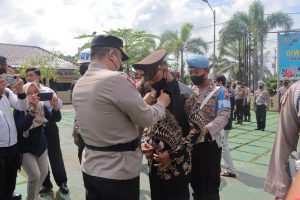 Secara simbolis Kapolres Purworejo melepas baju dinas Polri yang dikenakan AL dan menggantikan dengan baju biasa.
