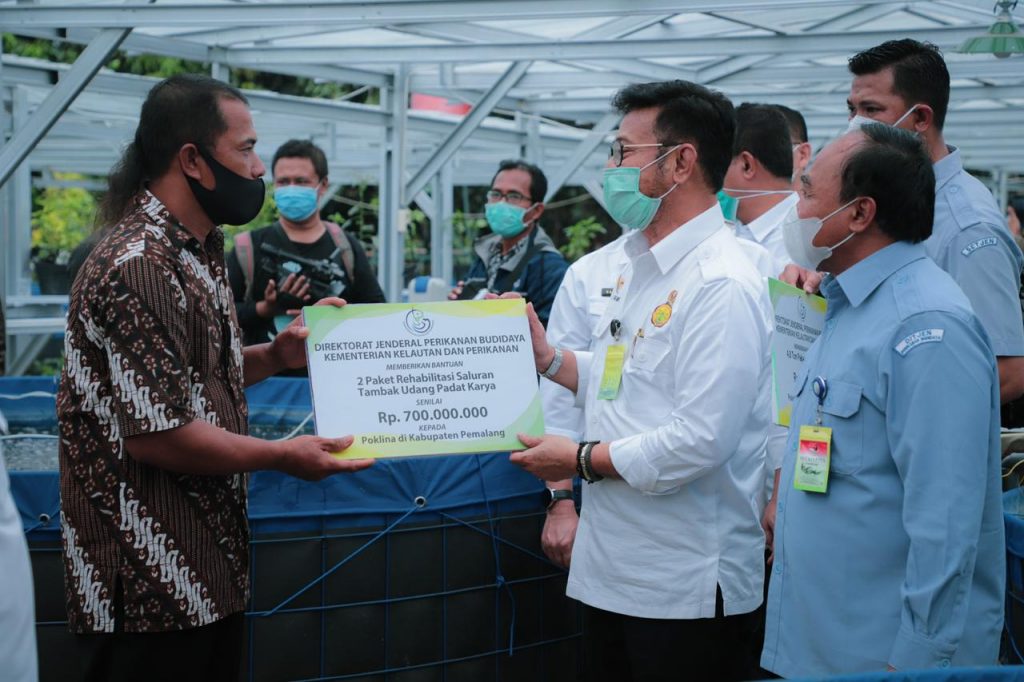 Topsberita.com. PEMALANG (07/12) – Menteri Kelautan dan Perikanan ad Interim, Syahrul Yasin Limpo, menyebut budidaya lele dengan sistem bioflok sebagai program nyata KKP untuk meningkatkan kesejahteraan masyarakat. “Hari ini saya melihat pengembangan lele yang cukup bagus. Ini harus menjadi contoh bagaimana masyarakat bisa melakukan akselerasi ekonomi di tengah kondisi pandemi ini,” kata Menteri Syahrul saat mengunjungi tambak bioflok milik Kelompok Pembudidaya Ikan (Pokdakan) lele “Mutiara” di Desa Kaligelang, Kecamatan Taman, Kabupaten Pemalang, Jawa Tengah, Senin (07/12). Pokdakan Mutiara memiliki 32 kolam lele bioflok di atas lahan seluas lebih kurang 1.000 meter persegi. Setiap kolam bioflok berdiameter 3 meter itu masing-masing diisi 3.000 benih ikan lele. Selain meninjau kolam lele bioflok, Menteri Syahrul juga memberikan bantuan perikanan budidaya senilai Rp2,3 miliar berupa: 9 paket bioflok dengan nilai Rp1,5 miliar; 2 paket rehabilitasi saluran tambak udang padat karya senilai Rp700 juta; 4,8 ton pakan ikan mandiri senilai Rp28,8 juta; dan 183 ribu ekor benih ikan bandeng dengan nilai Rp12,1 juta, serta 100 ribu ekor benih lele senilai Rp10,2 juta. Menteri Syahrul menjelaskan, ia bersama Dirjen Perikanan Budidaya Slamet Soebjakto datang ke Pemalang, Jawa Tengah, untuk memastikan seluruh program yang telah digulirkan dan sedang diimplementasikan berjalan sesuai rencana. “Kita tahu Desember ini adalah akhir tahun anggaran 2020. Oleh karena itu, bagaimana kita memastikan semua aktivitas yang menyentuh rakyat bisa dilakukan,” ujarnya. “Saya kira akselerasi ekonomi ini harus dilakukan di semua daerah,” tegasnya. Program budidaya lele dengan sistem bioflok, menurut Menteri Syahrul, sejalan dengan pesan yang disampaikan Presiden Joko Widodo agar pemerintah terus berkontribusi untuk hadirnya kesejahteraan dan peningkatan ekonomi masyarakat, khususya di tengah kondisi pandemi ini. Ia menilai budidaya lele bioflok efisien dari segi lahan sekaligus menguntungkan secara ekonomi. “Saya pastikan bahwa semua aktivitas di Kementerian Kelautan dan Perikanan berjalan dengan baik dan saya melihat sendiri di lapangan, kita semua telah bekerja maksimal untuk kepentingan negara dan bangsa,” tutupnya. Sementara itu Dirjen Perikanan Budidaya, Slamet Soebjakto menambahkan, pihaknya terus akan melakukan terobosan program termasuk meningkatkan jumlah bantuan untuk masyarakat pembudidaya ikan. “Harapan kita, ini bisa di _scale up_, bisa diperbanyak oleh masyarakat-masyarakat yang lain. Untuk di 2021 nanti, kita juga identifikasi untuk calon penerima dan calon lokasi (penerima bantuan),” jelas Slamet.