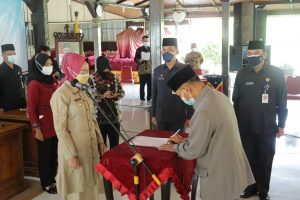 Pelantikan 94 Pejabat Administrator dan Pengawas, agak berbeda dari kebiasaan lama. Karena di masa Pemberlakuan Pembatasan Kegiatan Masyarakat (PPKM) maka pelantikan digelar secara virtual. Para pejabat yang dilantik mengikutinya lewat Video Conference di instansi asal masing-masing dan hanya 20 orang saja yang dilantik langsung di Pendopo.