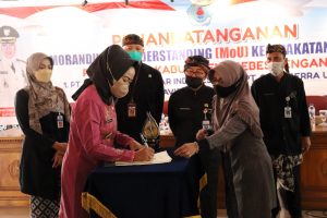 Penandatangan di saksikan Kepala Dinas Lingkungan Hidup dan Pengelolaan Sampah Kabupkaten Brebes Laode Vindar Aris Nugroho, Staf Ahli Bupati, Asisten Sekda, Kepala OPD terkait, Camat, Kepala Desa dan tamu undangan lainnya.***