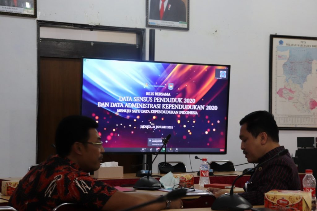 Rilis diikuti virtual oleh Wakil Bupati Brebes Narjo SH MH didampingi Sekda Brebes Ir Djoko Gunawan MT, Kepala Dinas Komunikasi Informatika dan Statistik Drs Tatag Koes Adiyanto, Kepala BPS Brebes Dra Prita Rextiana MM, Kepala Dinas Kependudukan dan Pencatatan Sipil Mayang Sri Herbimo, serta Kepala Dinpermades Subagya, dari ruang rapat Setda Brebes.