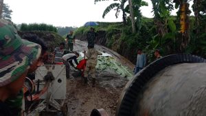 Letkol Inf Sapto Broto bersalaman dengan mereka dan langsung mengecek perkembangan pembangunan sasaran fisik disana berupa pembangunan talud, pengecoran jalan dan jembatan.