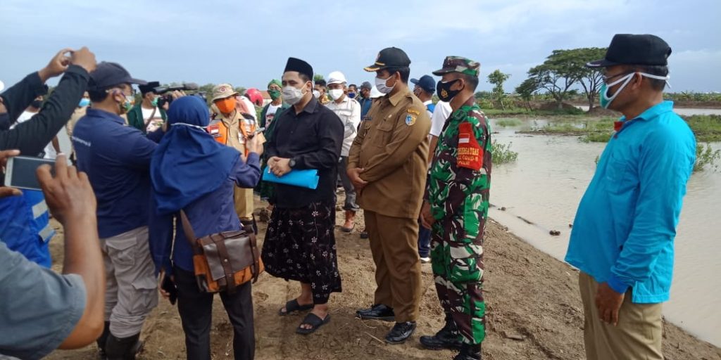 Tops berita.com. Demak – Komandan Koramil (Danramil) 02/Bonang jajaran Kodim 0716 Demak Kapten Inf Tulodo dampingi Wakil Gubernur Jawa Tengah KH.Taj Yasin Maimoen beserta istri meninjau kondisi pemukiman wargaa pasca tanggul jebol di Sungai Tuntang yang berada di Desa Sumberejo, Kecamatan Bonang, Kabupaten Demak, Senin (25/01/21) Sore. Tanggul yang jebol pada Jumat (1/1/2021)tersebut,di akibatkan lantaran tidak kuat menahan volume debit air serta derasnya arus sungai yang diakibatkan intensitas hujan kala itu begitu deras sejak beberapa hari terakhir. “Ini karena intensitas hujan di daerah Demak tinggi, kemudian airnya meluap dan menggenangi areal pertanian serta permukiman warga,” ujar KH.Taj Yasin saat berada di lokasi. Disisi lain, Kepala Desa Sumberejo, Misbahul Munir menyebutkan ratusan hektare sawah yang padinya siap panen mengalami puso (gagal panen) akibat diterjang air sungai bercampur rob yang menggenang sejak awal tahun 2021. “Banjir di pemukiman penduduk memang sudah surut. Namun di areal pertanian di dekat sungai sampai sekarang masih belum surut. Petani mengalami puso karena sampai sekarang tanaman padi terendam banjir,” keluh Misbahul. Dirinya juga menyampaikan, sebelumnya ada 250 rumah warga di tiga desa yakni Desa Sumberejo, Kembangan, dan Karangrejo Kecamatan Bonang yang ikut tergenang.Selain itu, jembatan di Desa Sumberejo yang merupakan akses penghubung dari Kecamatan Bonang ke desa Karangtengah juga roboh akibat peristiwa tersebut. Lebih lanjut, Wakil Gubernur KH.Taj Yasin mengatakan, Pemerintah Provinsi Jawa Tengah dan Pemerintah Kabupaten Demak akan bekerja sama dengan sigap untuk mengatasi musibah ini. “Kami segera berkoordinasi dengan BBWS (Balai Besar Wilayah Sungai) mengenai apa saja yang harus segera melaksanakan,” terangnya. Dalam kesempatan itu, KH.Taj Yasin menekankan bahwa pemerintah tidak melindungi warga yang memanfaatkan bantaran sungai untuk bercocok tanam tanpa memperhatikan kondisi lingkungan. “Kita bisa lihat banyak pohon pisang di bantaran sungai. Memanfaatkan bantaran sungai diizinkan, tapi jangan sampai tumbuhan yang ada di bantaran sungai malah menghalangi aliran air sungai,” tegasnya. Di sela peninjauan itu, KH.Taj Yasin juga menyerahkan bantuan berupa beras, mi instan, dan minyak kayu putih kepada warga terdampak banjir. ( tgh )