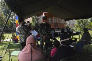 ” Untuk membantu percepatan Vaksinasi ini, maka mari kita, Cari, Dekati dan Layani masyarakat itulah motto Korem 061/SK. Yang artinya kita harus turun langsung atau jemput bola melaksanakan vaksinasi secara door to door. Agar semua masyarakat yang berada ditempat yang jauh dari sentral vaksinasi dapat ikut serta melaksanakan vaksinasi” ujarnya.