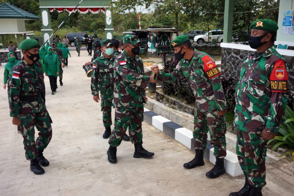 Tops berita.com. Komandan Korem 121 Alambhanawanawai (Abw) Brigjen TNI Ronny, S.A.P. memastikan pasukan Satgas yang bertugas diperbatasan RI-Malaysia dalam kondisi sehat. Danrem 121/Abw beserta rombongan mengunjungi Pos Kotis Satgas Pamtas RI-Malaysia Yonif 407/Padmakusuma, Badau kabupaten Kapuas hulu Kalbar, Rabu (20/01/2021). Pada kunjunganya Danrem 121/Abw memberikan bingkisan kepada prajurit dan peninjauan lingkungan Pos Kotis. Danrem mengingatkan kepada Personel Satgas Pamtas Yonif 407/PK agar selalu menjaga kesehatan dan tetap semangat dalam bertugas menjaga keamanan didaerah perbatasan RI-Malaysia. “Jaga selalu kekompakan dan solidaritas tetap semangat dalam melaksanakan tugas” Tegas Brigjen TNI Ronny. Kunjungan Danrem didampingi Ketua Persit Kartika Candra Kirana Koorcab Korem 121/Abw bersama Kasiter Korem 121/Abw, Kolonel Inf Nyamin, Kasipers Korem 121/Abw,Kolonel Inf. Abdurrahman,Dandim 1206/Psb, Letkol Inf Basyaruddin,  dan Ny. Bertha Gultom.  ( tgh )