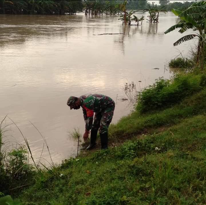 Tops berita.com. Demak- Tingginya curah hujan khususnya diwilayah Kabupaten Demak, Komandan Kodim 0716/Demak Letkol Arh M.Ufiz S.I.P.M.I.Pol memerintahkan Babinsa Jajaran Kodim 0716/Demak untuk memantau debit air aliran sungai di beberapa Wilayah. Selain itu Dandim juga memerintahkan babinsanya untuk mendata daerah yang rawan terjadinya bencana seperti banjir dan tanah longsor. Hal itu dilakukan untuk mengantisipasi resiko bencana di musim hujan yang terjadi saat ini. Dandim Demak Letkol Arh M.Ufiz S.I.P.M.I.Pol meenyampaikan kami telah memerintahkan seluruh jajaran Kodim 0716/Demak untuk memetakan titik mana saja yang kemungkinan rawan. Mulai hari ini hingga kedepan. Sehingga nanti kami bisa menentukan prioritas mana yang menjadi pusat perbantuan kita,” Ungkap Dandim. Ia menegaskan, secara umum, jajarannya siap mendukung Pemerintah Kabupaten (Pemkab) Demak dalam penanganan bencana. Baik sebelum bencana, saat terjadi bencana maupun pemulihan paska bencana. Dari segi personel hingga peralatan secara keseluruhan sudah siap diterjunkan sewaktu-waktu bila mana terjadi bencana. “Secara kualitas maupun kuantitas personel dan peralatan sudah siap,” tandasnya. Seperti yang dilakukan babinsa Trimulyo Sertu Amin Solikin bersama masyarakat memantau perkembangan ketinggian debit air sungai di Dukuh Puyang dan dukuh Nglekok Desa Sidoharjo Kecamatan Guntur Kabupaten Demak. Menurutnya debit air semakin naik sehingga dirinya mengajak warga sekitar agar tetap waspada dan terus memantau debit aliran sungai. Selain memberikan himbauan, Sertu Amin juga mensosialisasikan langkah pengamanan terhadap warga dari bencana banjir yang dapat datang kapan saja, mengingat intensitas hujan yang semakin rutin terjadi. (Tgh)