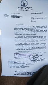 Surat susulan tersebut, Slamet Effendi, SE.MM selaku Direktur Perumda Tirta Mulia atau (PDAM) Kabupaten Pemalang,