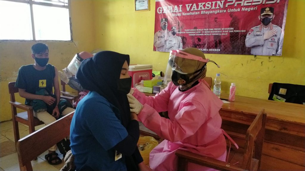 Brebes, Tops Berita – Polres Brebes kembali menggelar Gerai Vaksin Presisi di Desa Jagalempeni Kecamatan Wanasari Brebes Sabtu, (17/07/2021)