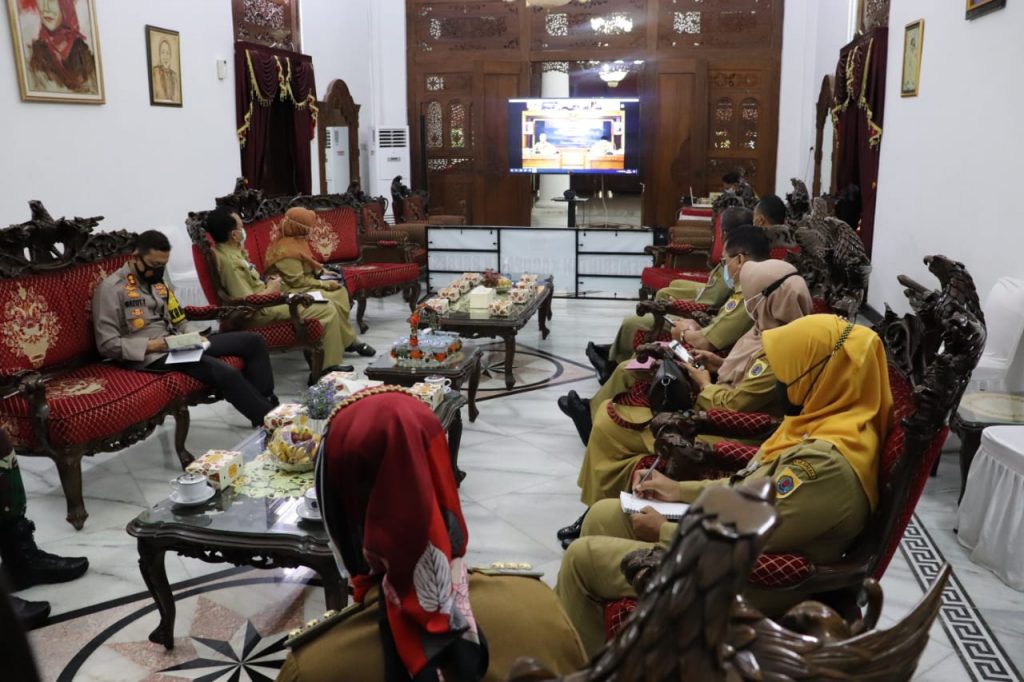 Dalam rapat yang di ikuti secara virtual dari Pendopo Kabupaten Brebes, tampak hadir Bupati Brebes Idza Priyanti SE MH, Wakil Bupati Brebes Narjo SH MH, Kapolres Brebes, Komandan Kodim 0713 Brebes, Sekda Brebes, Asisten 1, 2 dan 3 setda Brebes, serta beberapa kepala OPD dilingkungan Pemerintah Kabupaten Brebes.
