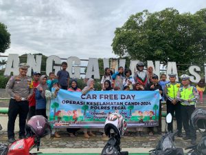 “Upaya Polres Tegal dalam mensosialisasikan kepada masyarakat tentang adanya Operasi keselamatan candi 2024 dengan cara mendatangi pengunjung Car Free Day.”terangnya