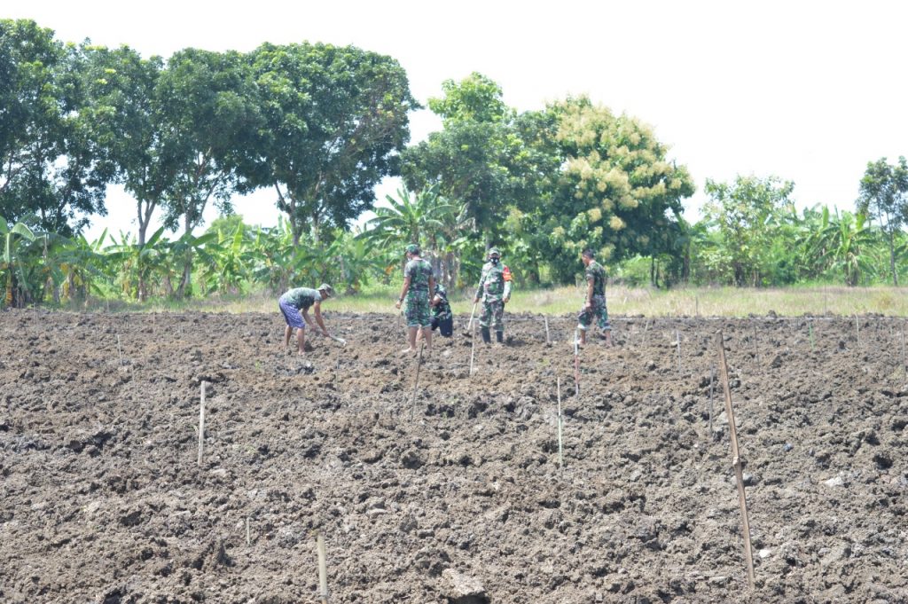 Topsberita.com. Demak – Mewabahnya virus Covid-19 di Negara belahan dunia bahkan Indonesia, tidak saja berimbas kepada perkembangan ekonomi dan sosial, bahkan pangan pun turut menjadi imbas mewabahnya virus Covid-19. Untuk mengantisipasi krisis pangan di tengah mewabahnya virus Corona tersebut, Kodim 0716/Demak jajaran Korem 073/Makutarama melalui Koramil 09/Karangtengah, dengan cepat dan tepat melakukan ketahanan pangan dengan menyiapkan lahan seluas 1 Ha yang saat ini tengah dalam tahap pengerjaan pengolahan lahan.Senin (04/01/2021) Komandan Kodim (Dandim) 0716/Demak melalui Danramil 09/karangtengah Kapten Inf Mulyadi, menyampaikan, untuk ketahanan pangan di tengah Pandemi Covid-19, Kodim 0716/Demak telah menyiapkan lahan selain untuk tanaman padi dan palawija, juga menyiapkan lahan untuk tanaman buah-buahan diantaranya lahan untuk menanam pohon Pepaya jenis California. “Kesiapan lahan tersebut dalam rangka untuk membantu Pemerintah, baik Pusat maupun daerah dalam melakukan ketahanan swasembada pangan di tengah krisis pangan di saat mewabahnya virus Covid-19 seperti sekarang ini,” terang Danramil Kapten Inf Mulyadi Dalam teknisnya. lanjut Danramil, anggota Bintara Pembina Desa (Babinsa) Koramil 09/Karangtengah terjun langsung dari mulai penyiapan lahan, penanaman bibit sampai dengan merawat hingga masa panen tiba semua pengerjaan akan di lakukan oleh anggota Babinsa Koramil 09/Karangtengan secara bergilir setiap harinya,dengan mekanisme seperti itu di harapkan nanti akan menghasilkan produksi yang maksimal, paparnya. ( Tgh)