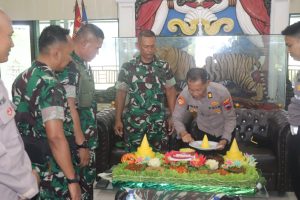 Komandan Yonif 407/PK, Letkol Inf Sisriyanto Ade Prasiska.,S.Hub.,Int. Yang diwakilkan oleh Kapten Inf Kusman selaku Dankima menyampaikan rasa terima kasih atas perhatian dan kejutan dari Polres Tegal. “Kegiatan ini menjadi bukti bahwa sinergi antara TNI dan Polri tetap terjaga dan semakin erat. Semoga kedepannya, kita terus solid dan mampu menjaga keamanan serta ketertiban masyarakat,” ujarnya.