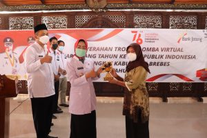 Demikian ajakan Bupati Brebes Hj Idza Priyanti SE MH saat penyerahan hadiah pemenang Lomba Seni Nasionalisme Film Pendek bagi Pelajar dan Pemuda, lomba Kreasi Olahraga Di Rumah Saja dan Lomba Brebes E-Sport Competition, di Pendopo Brebes, Rabu (25/8).