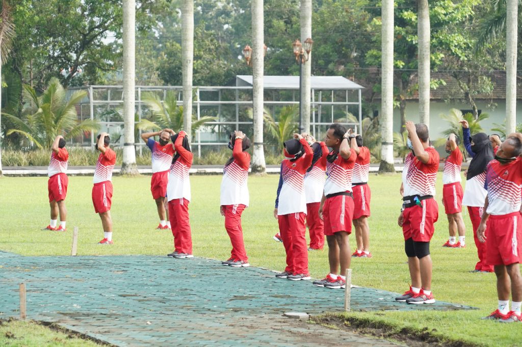 Topsberita.com. Banyumas – Mengantisipasi maraknya penyebaran Covid-19, prajurit Wijayakusuma dan PNS Makorem 071/Wijayakusuma, guna untuk menjaga imunitas tubuh atau kestabilan tubuh, lakukan aerobik bersama, Selasa (29/12/2020) di Makorem 071/Wijayakusuma, Sokaraja, Banyumas. Aerobik bersama keluar ksatrian dilakukan usai pelaksanaann apel pagi, dilanjutkan peregangan dipimpin Bajasrem 071/Wijayakusuma. Kajasrem 071/Wijayakusuma, Lettu Inf Sinung. P., menyampaikan, kegiatan yang dilaksanakan tersebut merupakan program satuan yang dilaksanakan dalam setiap harinya selama 30 menit dan dilanjutkan olahraga umum lainnya. Disamping itu, aerobik dan olahraga umum lainnya yang dilakukan prajurit dan PNS guna menjaga kebugaran tubuh, apalagi dalam situasi saat ini dimasa pandemi Covid-19, prajurit dan PNS harus bisa menjaga kondisi kesehatannya masing-masing. Sementara itu, Danrem 071/Wijayakusuma, Kolonel Inf Dwi Lagan Safrudin, S.I.P., pada kesempatan tersebut menyampaikan, agar prajurit dan PNS selalu menjaga dan merawat kesehatan dengan berolahraga setiap harinya selama 30 menit, hal ini sebagai wahana untuk menjaga kebugaran tubuh dan guna untuk mengukur kemampuan fisik prajurit dan PNS. Kegiatan aerobik ini juga disesuaikan dengan klasifikasi umur dan kondisi kesehatan prajurit. Terkait mewabahnya penyebaran Covid-19, Kolonel Dwi Lagan menghimbau kepada segenap prajurit dan PNS Wijayakusuma agar selalu menjaga kesehatan dengan memanfaatkan pembinaan fisik sesuai program satuan masing-masing dan sesuai instruksi komando atas, selain itu menjaga kebersihan diri, keluarga dan lingkungan tempat tugas. Disamping hal tersebut, prajurit dan PNS beserta keluarganya agar senantiasa mendisiplinkan dirinya dengan selalu menerapkan dan menjalankan pencegahan sesuai standar protokol kesehatan disetiap beraktifitasnya baik di lingkungan satuan maupun di lingkungan masyarakat, serta prajurit dan PNS agar dapat menjadi contoh bagi masyarakat sekelilingnya terkait dengan protokol kesehatan di saat pandemi Covid-19 ini. ( Tgh )