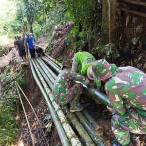 Untuk menangani bencana alam tersebut, Babinsa bersama warga sekitar membuat jembatan darurat yang terbuat dari bambu agar warga bisa melintas sementara sambil menunggu penanganan dari pemerintah.