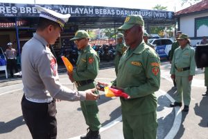 Pelatihan singkat 30 orang Linmas berlangsung di halaman Satlantas Polres Brebes. Kasatlantas Polres Brebes AKP Edi Sukamto langsung memimpin giat tersebut.