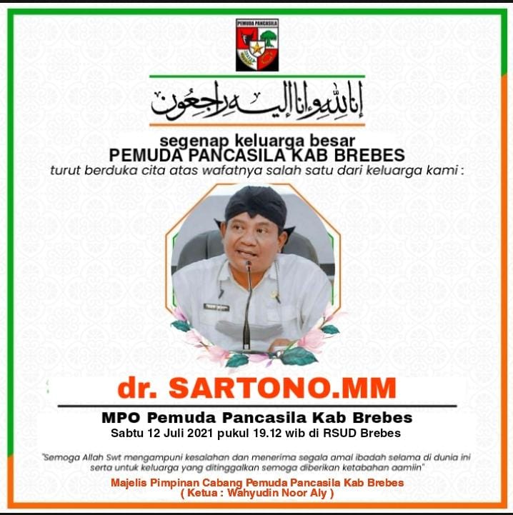 Dari informasi yang dihimpun, diketahui Sartono yang merupakan anggota Majelis Pertimbangan Organisasi (MPO) Pemuda Pancasila Kabupaten Brebes itu sebelumnya sempat menjalani perawatan di ruang ICU RSUD Brebes sejak 8 Juli 2021 hingga akhirnya meninggal dunia malam ini.