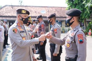 TEGAL –  Topsberita.com  Kapolres Tegal, AKBP Arie Prasetya Syafa’at memberikan penghargaan dan kenaikan pangkat kepada beberapa anggota Polres Tegal, Senin (4/10/2021).
