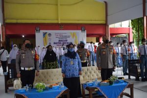 Slawi, – Topsberita.com Kapolres Tegal, AKBP ARIE PRASETYA SYAFA’AT S,I.K memimpin pembukaan satgas Covid-19 pelajar di aula SMA N 1 Slawi, Senin (18/10/2021).