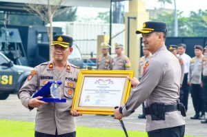 Kapolres Tegal Kota AKBP I Putu Bagus Krisna Purnama menyatakan, masuk lima besar tingkat nasional bukan hal mudah dan menunjukkan kinerja luar biasa. Hal itu disampaikannya saat menyerahkan penghargaan kepada Kapolsek Tegal Timur dalam apel di Mapolres, Senin (20/10/2025).