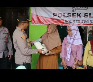 Diakir Kegiatan tersebut Kapolres juga memberikan Paket sembako Kepada warga Masyarakat Kel. kagok Kec. Slawi Kab. Tegal ( Tgh )