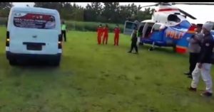 Setelah persiapan peralatan medis dipasangkan sebagai antisipasi di tengah perjalanan, ambulance mengantar Sinta ke lapangan desa dimana helikopter diparkir.