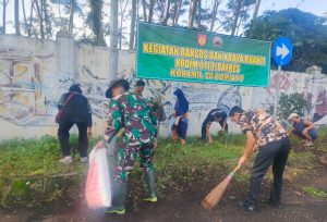 Karya bakti melibatkan personel dari berbagai satuan, Koramil, Kapolsek, Camat, Dishub, Dinas UPT LH, Satpol-PP Kec. Bumiayu, FKPPI dan relawan masyarakat.