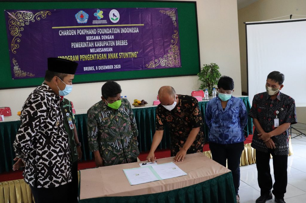 Wakil Bupati Brebes Narjo SH MH mewakili Pemerintah Kabupaten Brebes mengucapkan terima kasih atas kepedulian dan dukungan Charoen Pokphan Fundation Indonesia dalam upaya penanganan Stunting, dan berharap dengan kerja sama ini tidak lagi ada Stunting di Kabupaten Brebes.