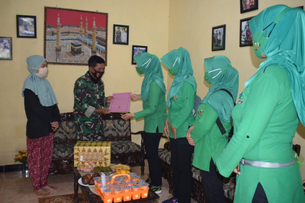 Tops berita.com – Untuk mempererat tali silaturahmi dan sebagai bentuk perhatian Organisasi Persit Kartika Chanda Kirana Cabang XXII Dim 0712/Tegal beserta rombongan melaksanakan kegiatan Anjangsana dan memberikan tali asih kepada keluarga anggota Kodim 0712/Tegal yang terkena musibah, Senin (18/01/2021). Ketua Persit Kartika Chandra Kirana cabang XXII Kodim 0712/Tegal Ny. Ica Sutan Siregar yang didampingi oleh sejumlah Pengurus menggelar kegiatan bakti sosial berupa anjangsana dan memberikan tali asih kepada para anggota dan keluarga TNI yang sedang mengalami sakit maupun meninggal dunia. Rombongan beranjangsana ke rumah Serma Fajar salah satu anggota TNI organik Koramil 02/Tegal Timur Kodim 0712/Tegal yang anaknya atas nama Annissyafa’ah Robi’atul Adawiyyah mengalami sakit jantung, yang pernah dirawat di RS Jantung Harapan Kita Jakarta pada tanggal 23 Mei 2013 dengan dokter yang menangani yaitu Dr Oktavia Lilyasari Sp.JP(K). Rombongan disambut suka cita serta rasa haru, oleh anggota keluarganya. Mereka tidak menyangka bakal kedatangan tamu dari ketua persit bersama rombongan. Kegiatan dilanjutkan dengan pemberian santunan yang di serahkan oleh Ketua Persit KCK Cabang XXII. Ny. Ica Sutan Siregar juga memberikan semangat kepada para anggota dan keluarga TNI yang sedang mengalami sakit agar tetap tegar dalam menghadapi ujian yang diberikan Allah. Ia juga mendoakan semoga lekas diberikan kesembuhan serta semua penyakitnya supaya cepat di angkat oleh Allah. Dengan pemberian santuanan ini diharapkan bisa membantu meringankan beban Serma Fajar dan keluarganya. “Jangan dilihat dari besar kecilnya barang atau nilai yang kita berikan, tapi kita berikan bantuan ini dengan iklas dan tulus,” jelasnya. Tak hanya sampai disitu, kemudian ketua persit berserta rombongan melanjutkan kegiatan anjangsana ketempat lainnya yakni ke rumah-rumah para keluarga dan anggota Kodim Tegal yang meninggal dunia antara lain Almarhum Sertu Muharto mantan Provost Kodim 0712/ Tegal, Almarhum Sertu Iswantoro mantan Babinsa Ramil 20/ Bojong, Almarhum Sertu Prio Purwanto mantan anggota Ramil 15/ Lebaksiu, Almarhumah Rokhayati istri Serka Sukamso Ramil 11/ Pangkah dan Almarhumah Hermi Susanti istri Serma Syaiful Rohim Ramil 13/ Kedung banteng.(Pendimtegal/tgl)
