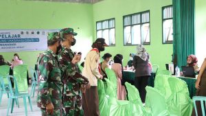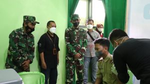 Banjarnegara – Topsberita.com Dandim 0704/Banjarnegara Letkol Arh Sujeidi Faisal, S.T,. M Han meninjau pelaksanaan vaksinasi pelajar. Didampingi Danramil 03/Wanadadi Kapten Inf Sutejo serta Kepala sekolah SMK Cokroaminoto M Chifdon Soleh di aula SMK Cokro Aminoto. Kecamatan Wanadadi Kabupaten Banjarnegara. Sabtu (02/10/21).