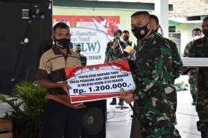 Sragen, Tops Berita – Kodim 0725/Sragen lounching pendistribusian dana Bantuan Tunai Pedagang Kaki Lima dan Warung Jalur TNI tahun 2021 di Aula Guyub Rukun Makodim Sragen. Besaran yang didapat oleh Para pedagang kaki lima dan Warung per orang sebesar Rp 1.200.000 dan data penerima bantuan BTPKLW sebanyak 5100 (Lima Ribu Seratus) Pedagang dan Warung tersebar di 20 kecamatan se kabupaten Sragen. Sehingga total Kodim Sragen menyalurkan dana sebesar Rp. 6.120.000.000 (Enam Milyar seratus dua puluh juta Rupiah).