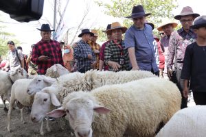 Pj Bupati dan Pimpinan Bank Jateng menyerahkan perguliran bantuan 25 ekor induk domba kepada Badan Usaha Milik Petani/Peternak (BUMP) PT Domba Sakub Maju Jaya. Usai membuka kontes, Pj Bupati Brebes beserta rombongan meninjau kontes dan pameran Domba Kambing..