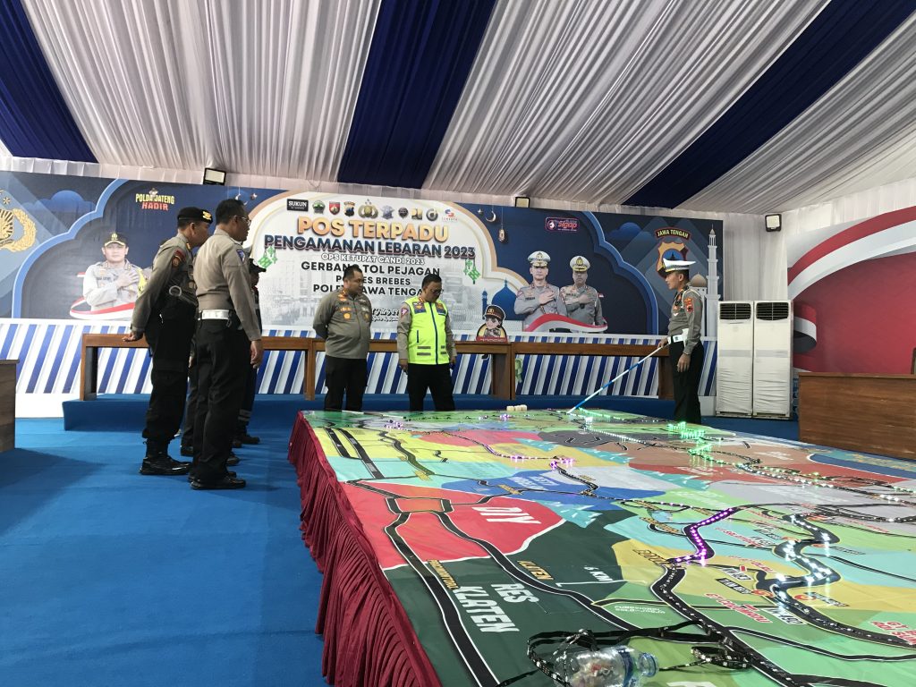Brebes topsberita.com- Dirlantas Polda Jateng Kombes Pol Drs.Agus Suryonugroho, S.H, M.Hum melakukan pengecekan kesiapan pos terpadu pengamanan lebaran 2023 di Gate tol pejagan Brebes.