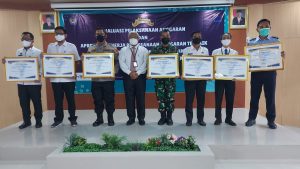 Lampung, Tops Berita – Pangkalan TNI Angkatan Laut (Lanal) Lampung berhasil meraih piagam penghargaan peringkat pertama Penilaian Kinerja Satuan Kerja (Satker) Terbaik Lingkup Mitra Kerja Kantor Wilayah Direktorat Jenderal Perbendaharaan (Kanwil DJPb) Provinsi Lampung TA 2021 Kategori Pagu Besar dari Kementerian Keuangan Republik Indonesia (Kemenkeu RI) Direktorat Jenderal (Ditjen) Perbendaharaan Kanwil DJPb Provinsi Lampung yang diberikan Kepala Kantor Wilayah DJPb Provinsi Lampung Drs. Sofandi Arifin, Ak. M.P.A. dan diterima secara langsung Pasprogar Lanal Lampung Mayor Laut (P) Bambang Abimanyu mewakili Danlanal Lampung Kolonel Laut (P) Nuryadi, bertempat di Gedung Aula Semergow, Kanwil DJPb Provinsi Lampung, Lampung, Senin (27/9).
