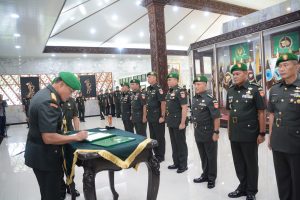 SEMARANG, Tops Berita – Pangdam IV/Diponegoro Mayjen TNI Widi Prasetijono pimpin upacara Sertijab Aspers Kasdam, Kahubdam, Kabintaljarahdam, Kasetumdam dan penyerahan jabatan Kasansidam IV/Diponegoro di Serambi Kehormatan Makodam. Rabu (25/01/2023).