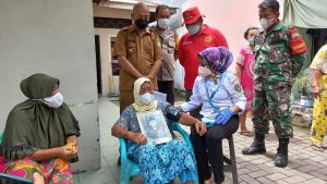 Tampak Brigjen TNI Asep mendampingi Tim Nakes menyapa ibu Ummi Kalsum, lansia yang sudah berumur 89 tahun.