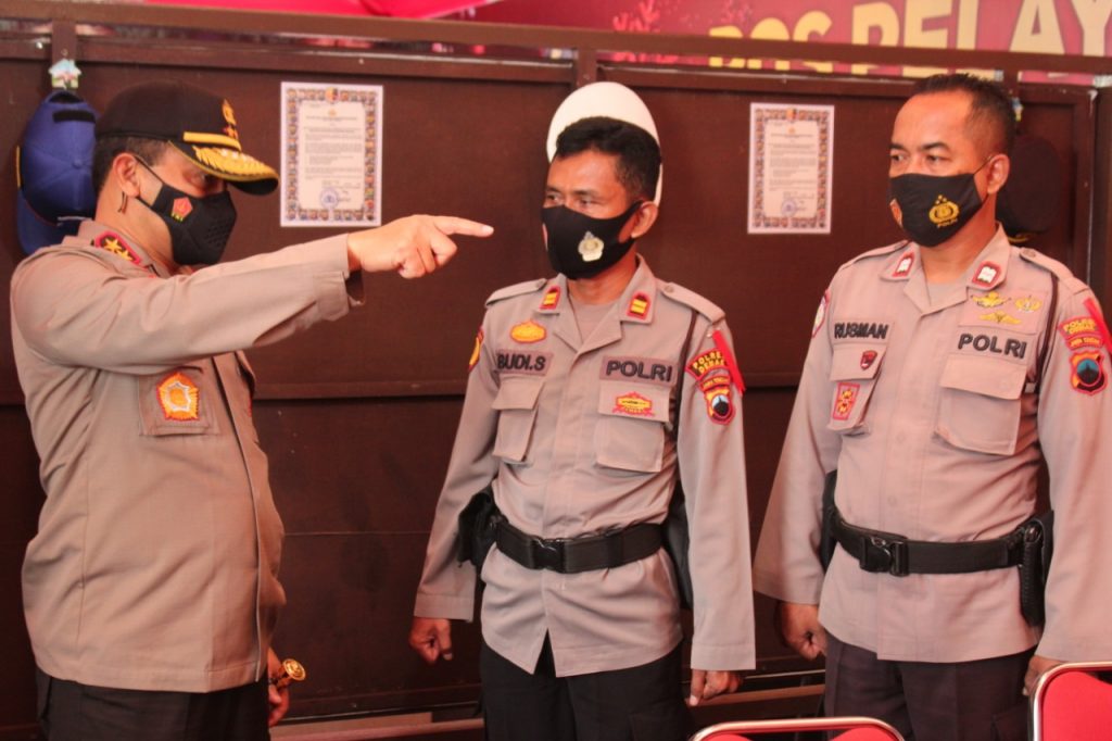 Topsberita.com. Demak – Kapolda Jawa Tengah Irjen. Pol. Drs. Ahmad Luthfi, S.H., S.St., M.K., melakukan pengecekan Pos Pelayanan terpadu Natal dan Tahun Baru (Nataru), di Terminal Demak, Selasa (29/12/2020). Dalam kegiatan tersebut, Kapolda beserta rombongan mengecek sarana dan prasarana Pos Yan , cek kesiapan atau kelengkapan anggota, serta ketersediaan sarana rapid test antigen. Kapolda mengucapkan terima kasih kepada semua pihak yang terlibat dalam pengamanan Nataru. Diantaranya polisi, TNI, Dinas Perhubungan, tenaga kesehatan, serta Satpol PP. “Petugas ini tanpa kenal lelah memberikan pelayanan kesehatan dan pengamanan saat Nataru,” ucap Kapolda. Sebagai bentuk support, dia menyerahkan tali asih kepada anggota yang melakukan penjagaan di Pos Yan Terminal Demak. Dia berpesan agar meningkatkan kewaspadaan dan mengantisipasi hal-hal yang tidak diinginkan. “Jangan lupa jaga kesehatan diri sendiri dan keluarga, apalagi di masa pandemi. Kita adalah garda terdepan dalam pengamanan,” tuturnya. Kapolda juga menekankan pentingnya menggunakan cara bertindak yang tepat. “Apabila terjadi hal-hal yang mengganggu Kamtibmas, segera lakukan tindakan sesuai hukum,” tegasnya. Sementara itu, Kapolres Demak AKBP Andhika Bayu Adittama menambahkan, saat ini petugas gabungan fokus terhadap maklumat Kapolri dan surat edaran Bupati Demak terkait prokes saat Nataru. Disampaikan bahwa petugas akan menindak tegas sesuai hukum jika ada pelanggar. “Kita akan melakukan tindakan tegas artinya sesuai dengan aturan yang berlaku, seperti pembubaran kerumunan, kemudian apabila ada penyalaan petasan dan kembang api akan kita berikan sanksi sesuai dengan hukum yang berlaku,” tandasnya. ( Tgh )