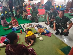 Setibanya di posko pengungsian, Kasdam meninjau para pengungsi serta memberikan bantuan kepada masyarakat yang terdampak banjir. Disampaikan Kasdam bahwa bantuan tersebut antara lain berupa biskuit, mie instan, minyak goreng serta air mineral.