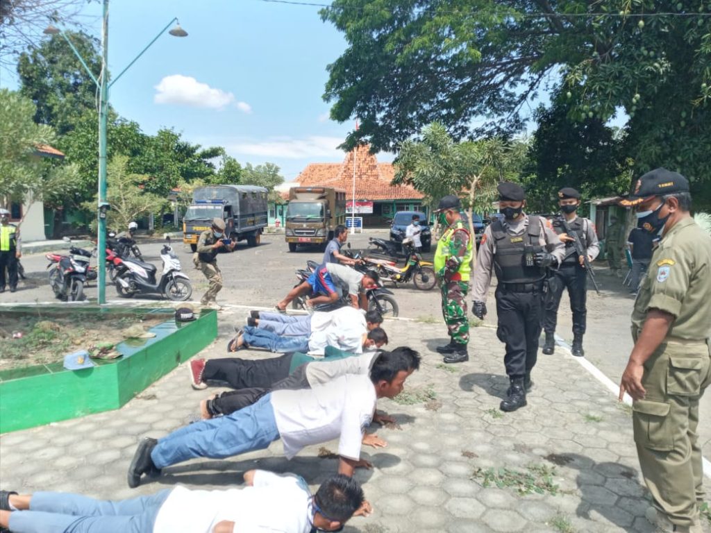 Tops berita.com. KRAMAT – Koramil 06/Kramat Kodim 0712/Tegal menggelar patroli penegakan disiplin protokol kesehatan (Prokes) kesehatan wabah Covid-19 di Jalan Raya Garuda Kramat, Kamis (14/1). Patroli yang melibatkan anggota Polsek dan Satpol PP Kabupaten Tegal ini berhasil menjaring 20 orang yang melanggar prokes. “Para pelanggar dihukum sosial. Ada yang menyapu halaman kantor kecamatan, ada pula yang push up,” kata Komandan Koramil (Danramil) Kramat, Kapten Czi Suharto, kemarin. Dia mengaku, patroli itu merupakan agenda rutin. Tujuannya untuk mencegah penyebaran Covid-19. Saat ini, kasus Covid di Kabupaten Tegal sudah mencapai 3.863 orang. Data itu mendasari dari Dinas Kesehatan (Dinkes) Kabupaten Tegal. Adapun, rincian kasusnya yakni, pasien yang sudah sembuh 3.287 orang, isolasi mandiri 286 orang, dirawat di rumah sakit 151 orang dan meninggal dunia 139 orang. “Karena itulah, kita rutin menggelar patroli protokol kesehatan,” sambung Danramil. Dia mengungkapkan, saat melaksanakan patroli, ada 4 anak pelajar sekolah menengah kejuruan (SMK) yang melanggar protokol kesehatan. Selain didata namanya, keempat pelajar itu mendapat hukuman. “Saat itu kami menawarkan hukumannya, apakah mau menyapu, menyanyi lagu Nasional atau push up. Dan mereka milihnya push up,” ujarnya. Ketika memberikan hukuman, Kapten Suharto juga memberikan edukasi tentang bahayanya virus corona kepada para pelanggar. Diharapkan, setiap keluar rumah, warga harus memakai masker, jaga jarak dan cuci tangan pakai sabun. “Mereka diberi hukuman karena tidak pakai masker,” pungkasnya. (Pendimtegal/tgh)